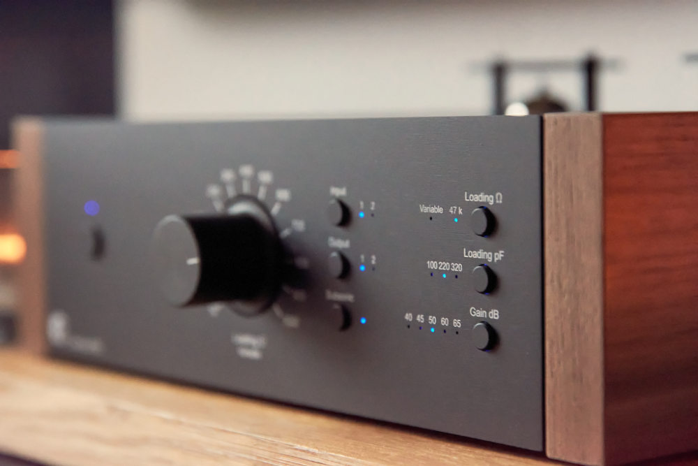 In der ersten Verarbeitungsstufe nach der Signalabtastung auf der Schallplatte ein Phono-Preamp mit Röhrenausgangsstufe und frei einstellbaren Anpassungen für MC/MM Tonabnehmersysteme.