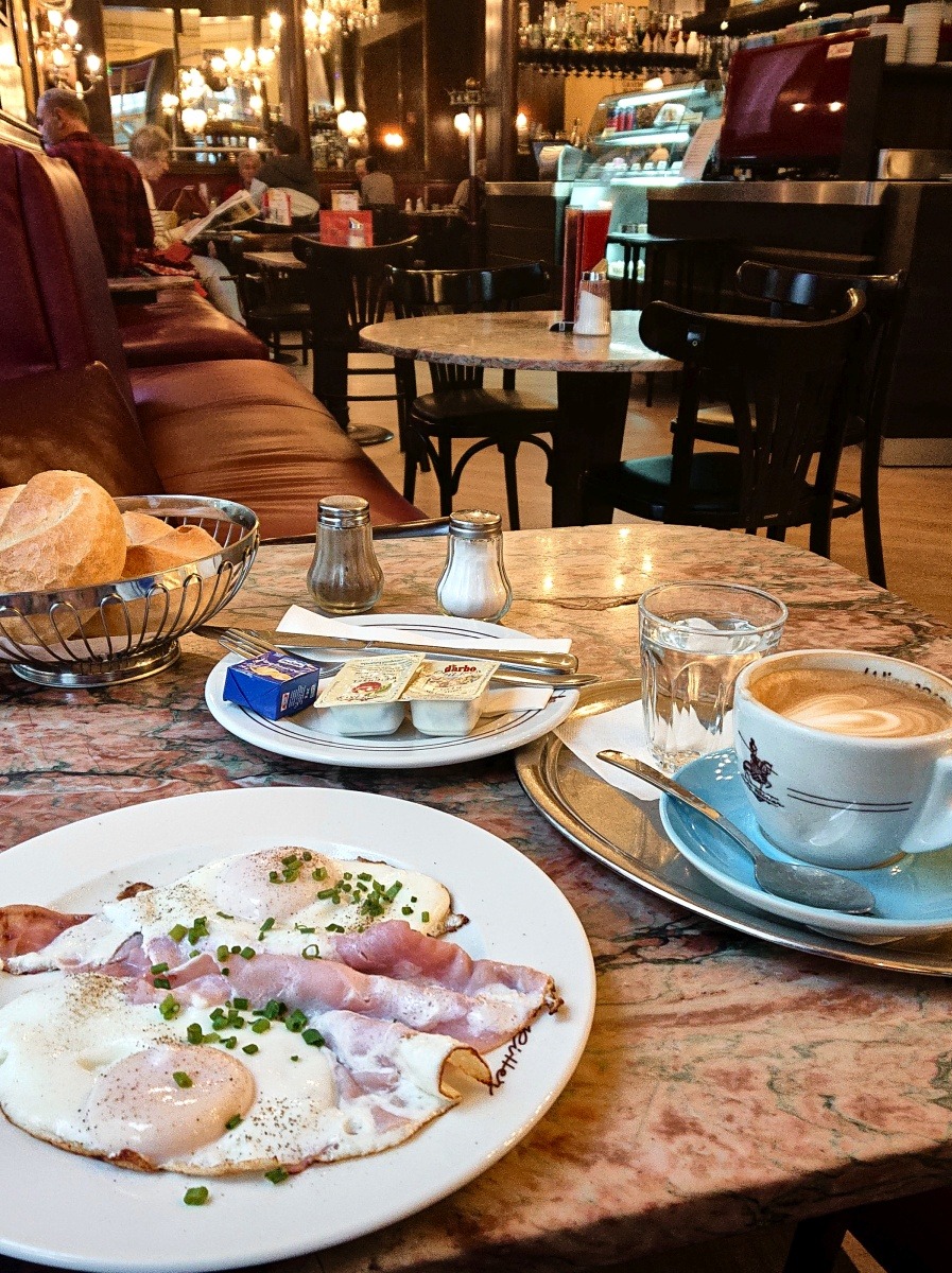 Tagesaufgabe 1: Morgens ein “Stück“ Wien ist mir wichtig – Das Früh“Stück“ im Café Ritter, klassisch und elegant – das Interieur und der Kaffee.